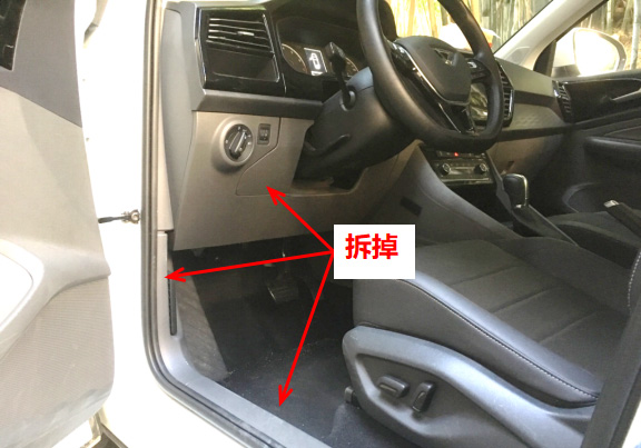 6、當(dāng)控制盒在尾箱時(shí),拆尾箱側(cè)邊飾板,圖示僅供參考。